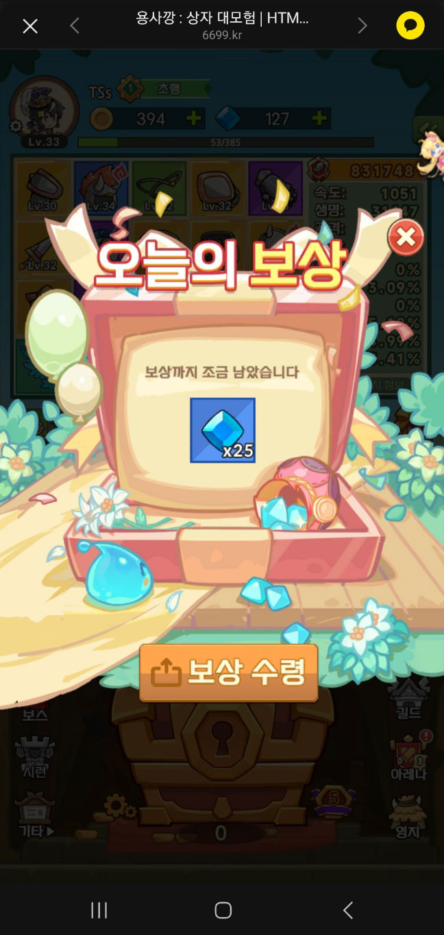 게임을 하다 보면. 오늘의 보상이라고 이렇게 뜨는데..