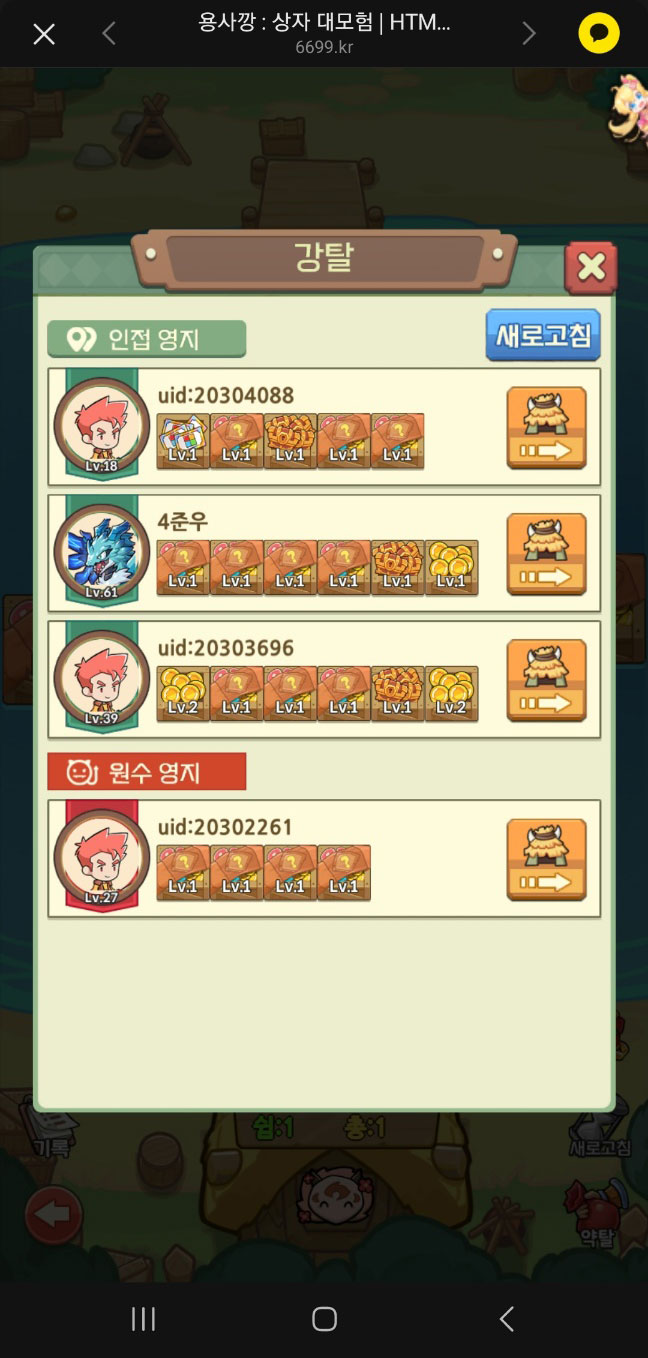 봐서 뭐 하겠나. 좋은 거 털어갔겠지 ㅋㅋ. 인접 영지는 5분마다 새로고침 할 수 있다.