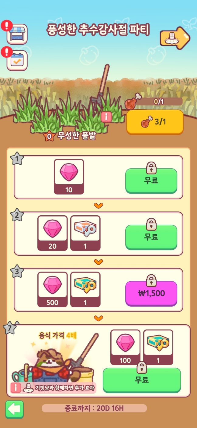 열심히 한다면 닭다리 정도는 결제하지 않아도 금세 모을 수 있다.